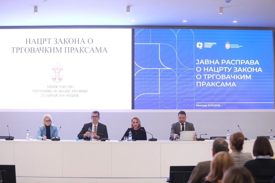 Predstavljen je Nacrt Zakona o trgovačkim praksama, koji bi trebalo da bude usvojen do aprila ove godine. Javna rasprava traje do 28. januara i plan je da se predlog zakona pred poslanicima nađe na prolećnom zasedanju Skupštine Srbije.