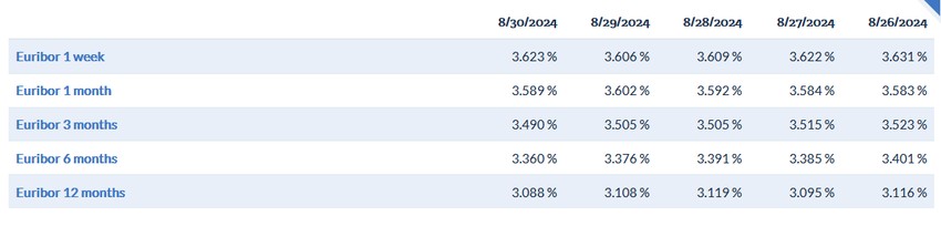 Šestomesečni euribor (6M) stigao je od maksimalnih 4,14 odsto u oktobru prošle godine do trenutnih 3,36 procenata.
