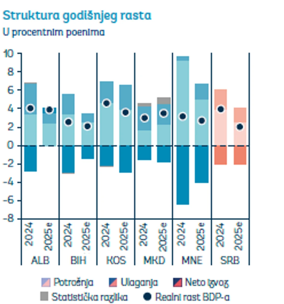 Prognoze iznete u Redovnom ekonomskom izveštaju za Zapadni Balkan pokazuju da će kombinovani privredni rast svih zemalja regiona, dostići 2,8% u 2026. što je 0,3 procentna poena ispod prethodnih projekcija. Očekuje se skromno ubrzanje rasta na 3,2% u 2027. godini.