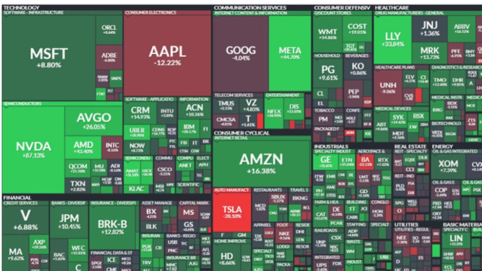 Međutim, iako nismo imali sjajne podatke za inflaciju u SAD, tržište nastavlja da raste vođeno fantastičnim performansom industrije poluprovodnika na čelu sa Nvidijom koja je od početka godine porasla 87.13 odsto. Prate je Meta (44.70%), AMD (43.40%), Eli Lilly (33.84%), dok od vodećih kompanija razočaravaju Tesla (-28.10%), Apple (-12.22%) i Alphabet (-4.04%).