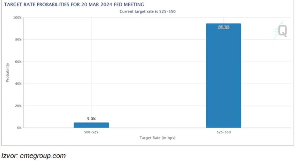 Sledeći je FED koji će objaviti svoju odluku 20.03.2024. godine, a gotovo izvesno je da tada neće spustiti kamate.
