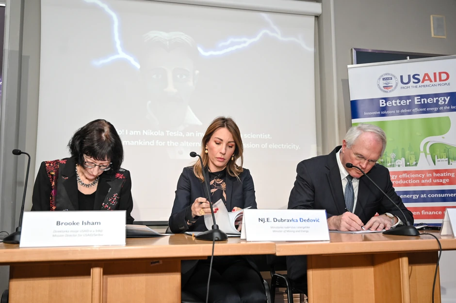 Ministarstvo rudarstva i energetike i Agencija Sjedinjenih Američkih Država za međunarodni razvoj (USAID) potpisali su danas Memorandum o razumevanju, kako bi zajedno radili na unapređenju energetske efikasnosti u Republici Srbiji. Memorandum su u Muzeju Nikole Tesle potpisali ministarka rudarstva i energetike Dubravka Đedović i direktorka misije USAID u Republici Srbiji Bruk Ašam, a potpisivanju je svedočio ambasador Sjedinjenih Američkih Država u Republici Srbiji Kristofer Hil.