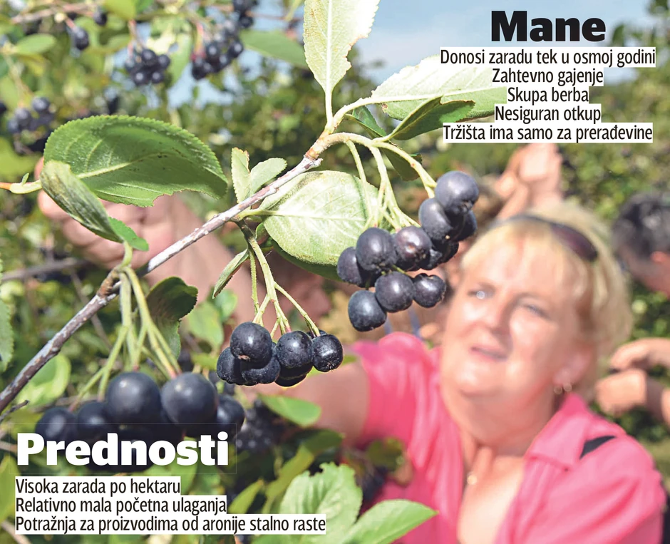 - Kod nas je problem što pri podizanju zasada nije konsultovana struka, pa smo dobili mnogo loše podignutih zasada. Najbolje su prošli oni proizvođači koji su zaokružili proizvodnju, aroniju preradili i sada te proizvode skupo prodaju - zaključuje Magazin.