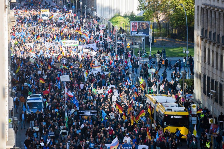 U Berlinu je u subotu na demonstracije pozvala partija Alternativa za Nemačku, AfD. Prema podacima policije najavljen je skup od 4000 ljudi, ali je broj okupljenih bio u najmanju ruku dva puta veći.