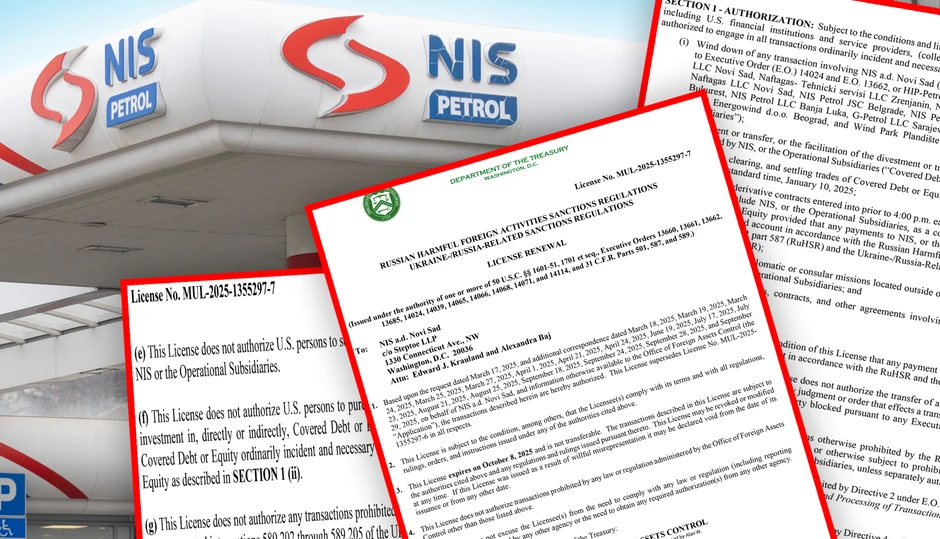 Ministarstvo finansija SAD izdalo je 30. septembra novu posebnu licencu kojom je odloženo stupanje na snagu sankcija u punom obimu prema kompaniji Naftna industrija Srbije (NIS). Ovom odlukom NIS-u je omogućeno nesmetano obavljanje operativnih aktivnosti najkasnije do 8. oktobra 2025. godine, a šta tačno piše u dokumentu koji je stigao?