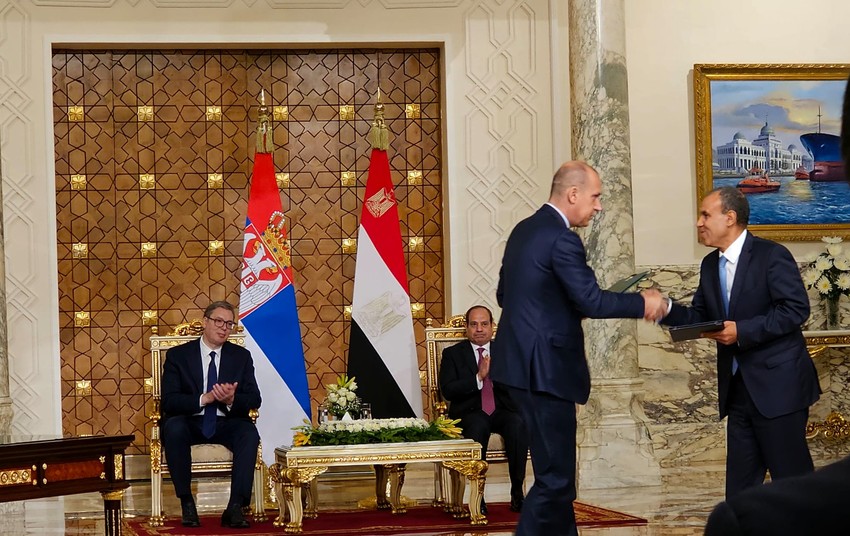 Sporazum o slobodnoj trgovini potpisali su ministar unutrašnje i spoljne trgovine Srbije Tomislav Momirović i ministar za investicije i spoljnu trgovinu Egipta Hasan Al Hatib.