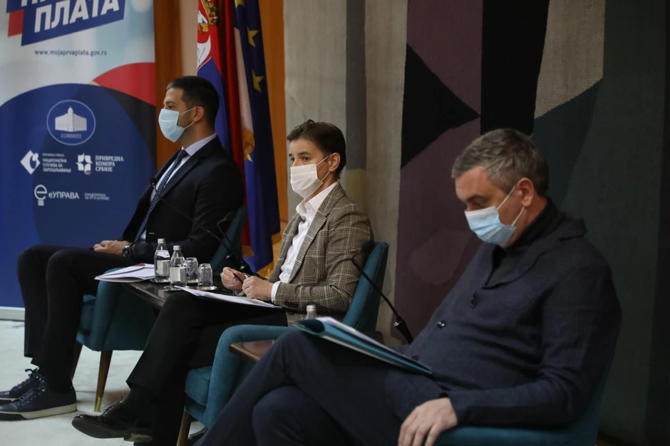 "Svi smo bili sučeni sa tom 'kvakom 22' kada poslodavac traži radno iskustvo i kako doći do tog iskustva", rekla je Brnabić, naglasivši da je zato država izdovjila dve milijarde dinara za "Moju prvu platu".