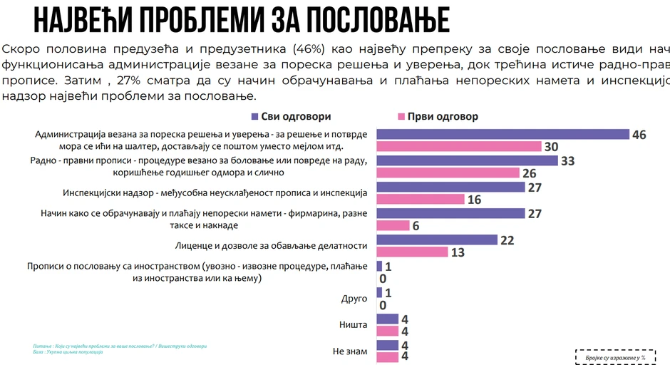 Pored pristupa finansiranju, još jedan izazov sa kojim se suočava većina privrednika u zemlji, a ne samo početnici u poslovanju, predstavljaju različite administrativne procedure koje nisu digitalizovane, te je za uzimanje različitih uverenja, potvrda ili rešenja neophodno otići na šalter institucije, pri čemu se gubi dosta vremena koje bi inače iskoristili za razvoj poslovanja.