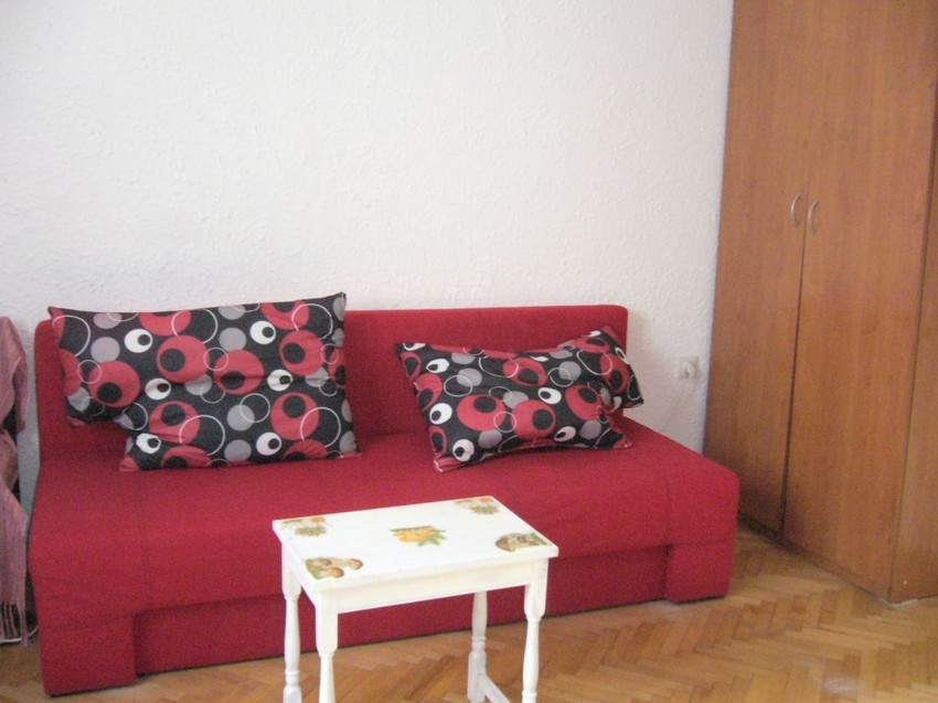U ovom oglasu stoji d ase iznamljuje namešten stan u centru. Poseduje dve terase i dva televizora. Svi troškovi su oko 100 evra.