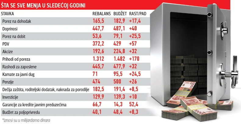 Povećan je iznos za subvencije u poljoprivredi za oko 8,5 milijardi dinara. Biće novca za regresirano gorivo poljoprivrednicima, subvencije po hektaru za žitarice, za veštačko đubrivo, davanja po grlu stoke, premije po litru mleka, pa se država nada da će poljoprivredni rod dogodine biti bolji, a samim tim niže cene hrane i veći izvoz.