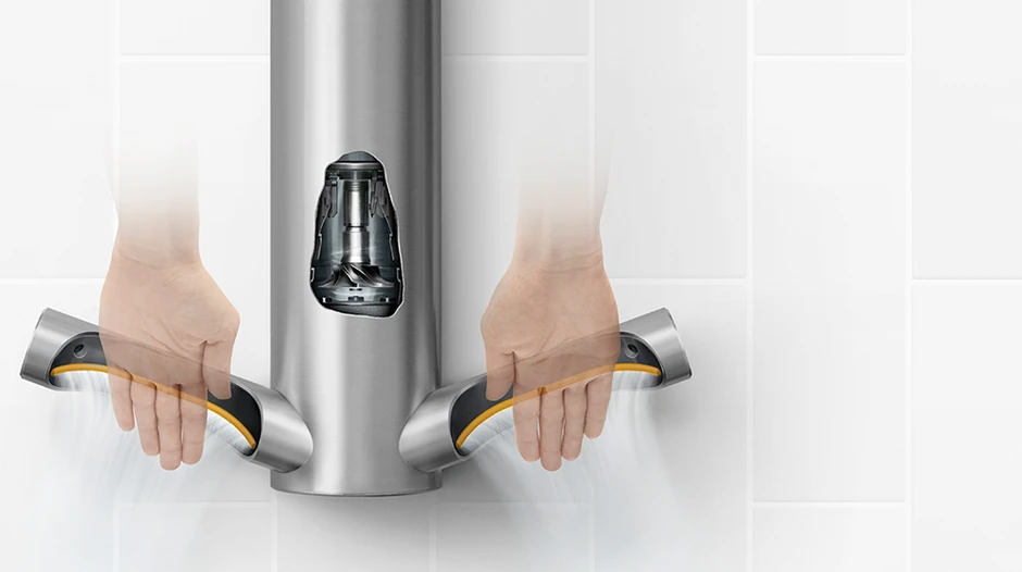 Takođe, HEPA H13 filter blokira 99,95 % čestica, uključujući bakterije i viruse, a Curved Blade™ design dva zaobljena difuzora vazduha otvora 0,45 mm produciraju mlaz vazduha od 624 km/h koji prati linije ruku, uklanjajući vodu brzo i higijenski.