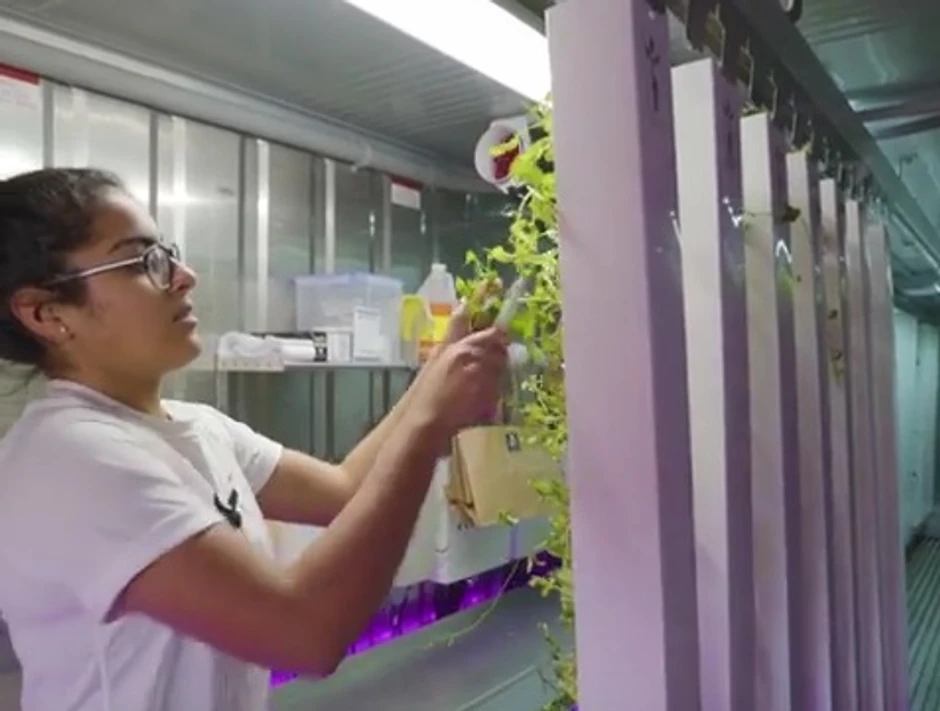 Jedan kontejner površine 13 metara daje 98 kvadratnih metara prostora za uzgoj useva. Opremljen je dugim, uskim stubovima sa usevima koji vise u gredicama od tavanice na dole. Vodu i hranjive sastojke usevi dobijaju od cevi za navodnjavanje postavljenih duž vrha stubova, dok svetlost dolazi iz LED sijalica.