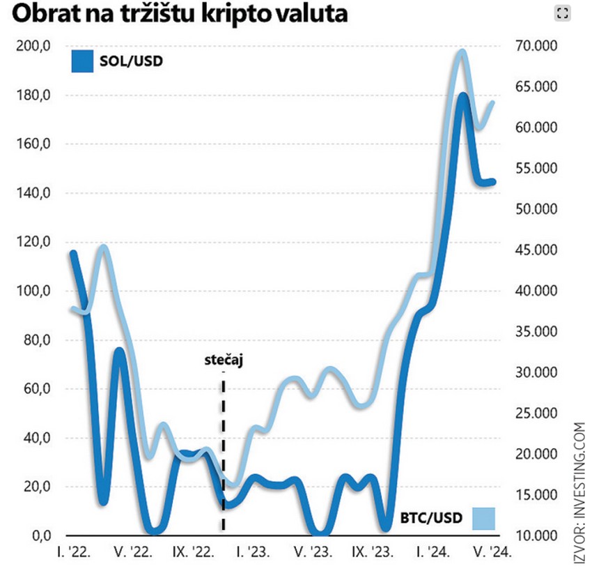 U međuvremenu su likvidirana i neka profitabilna ulaganja (Robinhood Markets i Anthropic), te prodane brojne nekretnine, a kada su napokon došle na red i kriptovalute, odnos snaga na tržištu bio je bitno povoljniji. Ilustracije radi, kurs solane (koju je Bankman-Fried strasno podržavao) u novembru 2022. godine kretao se ispod 20 dolara, a trenutno je iznad 140 dolara i stečajnog upravnika stavlja u vrlo komotnu poziciju.