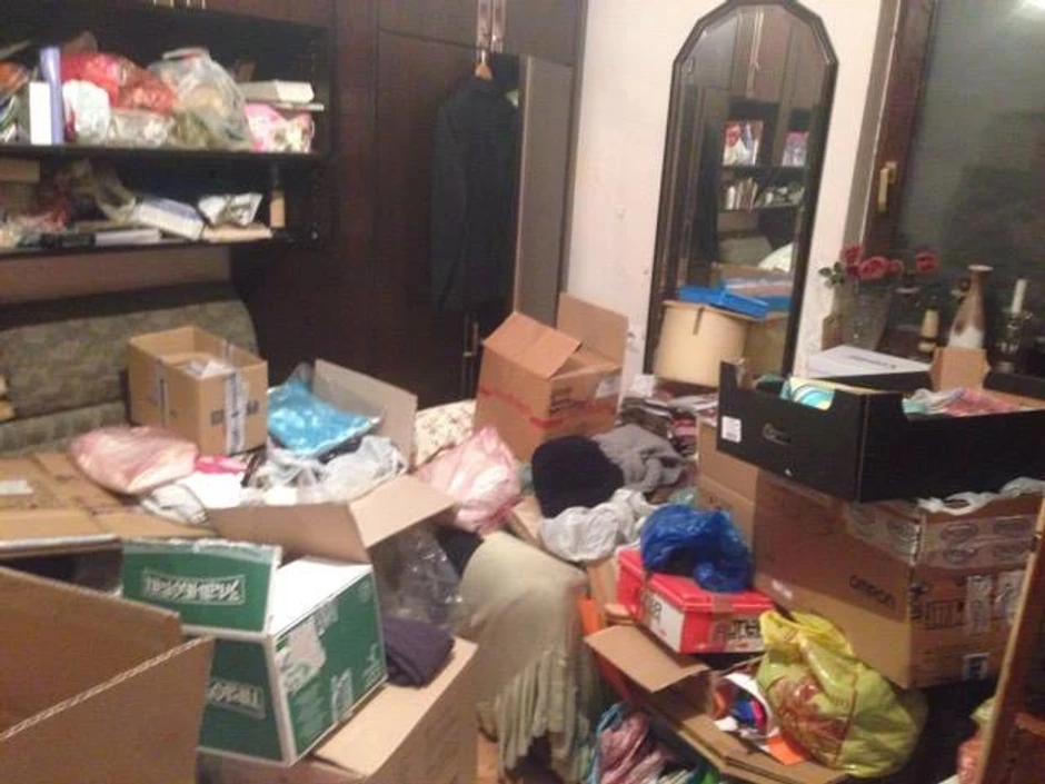 Kada uđete u njegov stan, zatičete gomilu nabacanih kutija, bukvalno od poda do plafona, ispunjenih najrazličitijim novinama i magazinima. Iako su mu novine i magazini strast, u kutijama možete naći i stari rešo, staklene i plastične upotrebljene flaše i čaše, čak i nekoliko "kašika" za cipele. U stanu se oseća miris memle, svaka praznina u sobama iskorišćena je da se u nju uguraju novine. Bilo ih je po stolicama, kuhinjskim elementima, krevetima, pa čak i u kupatilu.