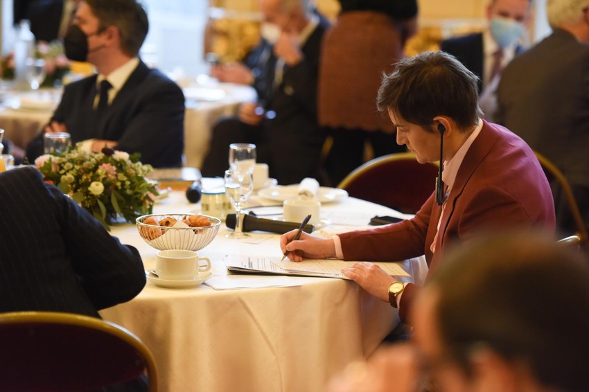 Radićemo na novim partnerstvima i vezama, a vi imate ključ za uspeh. Nadam se da ćemo ojačati našu saradnju - poručio je francuskim preduzećima potpredsednik Senata. Predsednica grupe prijateljstva u francuskom Senatu Marta de Sidrak rekla je na radno doručku koji je posvećen Srbiji da joj je velika čast zbog toga što je premijerka specijalno došla iz Beograda na sastanak sa privrednicima iz Francuske. ⁃