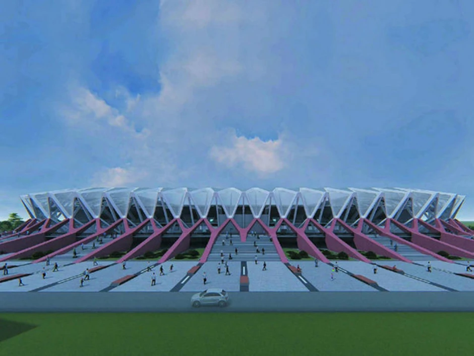 Planirani teren je dimenzija 105x68m, sa podlogom od prirodne trave, u skladu sa UEFA zahtevima. Objekat je pravougaone forme sa zaobljenim ivicama, sa tribinama u više nivoa i pratećim sadržajima. Tribine su organizovane prema sektorima (istok, zapad, sever, jug), sa odnosom prema ulaznim koridorima za pristup gledalaca.