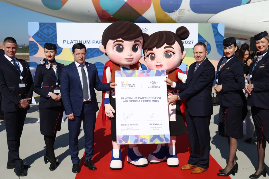 Sporazum su potpisali direktor "Er Srbije" Jirži Marek i direktor preduzeća "Ekspo 2027" Beograd Danilo Jerinić na pisti beogradskog aerodroma "Nikola Tesla", simbolično na štafelaju ispred aviona "Er Srbije" erbas A330 sa oznakom Ekspo 2027, koji promoviše ovu manifestaciju.