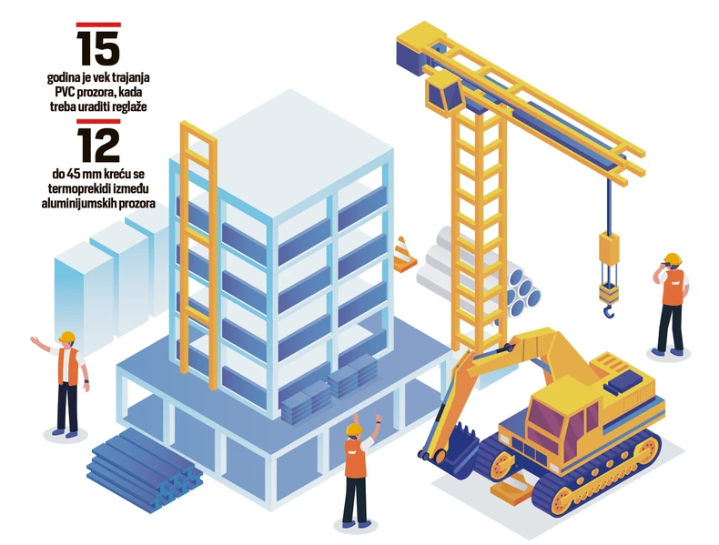 - Postoje PVC prozori sa više komora i aluminijumski prozori koji se sastoje od dve polutke spojene termoprekidima i obezbeđuju da faktor termičke provodljivosti ne bude veći od jednog W/m2K. PVC prozori su jeftiniji, ali i porozniji. Oni imaju čelična ojačanja da se ne bi dodatno krivili i to ih čini težim, pa se nakon 10 ili 15 godina korišćenja moraju raditi reglaže na njima. S druge strane, aluminijumski prozori sastoje se od prirodnih materijala, kvalitetniji su, skuplji i izdržljiviji. U zavisnosti od širine termoprekida koji spaja dve polutke, aluminijumski prozor ima različite termičke karakteristike. Širina tih termoprekida kreće se od 12 do 45 milimetara. Dodatno pojačana termika se obezbeđuje punjenjem polutki sa penastim izolacijama i takvi aluminijumski prozori omogućuju status takozvane pasivne kuće ili koeficijent prolaska topline manji od jedan: U-value < 1W/m2K - ističe Milan Vujko iz firme "Eurobravo" sa sedištem u Beogradu, Berlinu i Parizu.