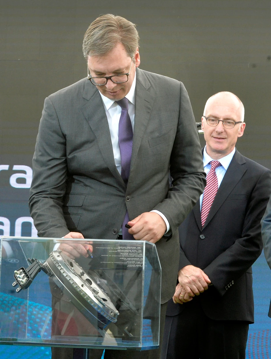 "Kao što ja imam u kabinetu srpskog Nemca, Jorga Heskensa, tako imamo nemackog Srbina, Milana Grujića. Želim njemu posebno da se zahvalim jer je mnogo pomogao da ZF bude ovde", rekao je rpredsednik Vučić juče u Pančevu.