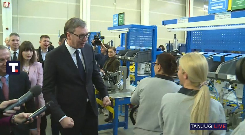 Predsednik Srbije je zatim otišao na svečano otvaranje fabrike kompanije Teklas automotiv. "Mi ćemo sa Teklasom i Haiksom imati preko 2.150 ljudi", rekao je predsednik Srbije. Kako je istakao, ljudi su zadovoljni ekonomskim uspehom Srbije.