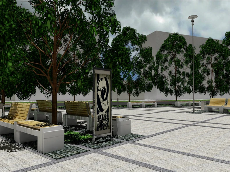 Centralni gradski trg imaće površinu od 8.600 m2, a deo trga će imati pozornicu, fontanu i zelene površine.