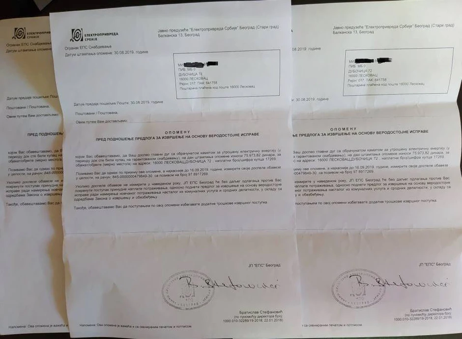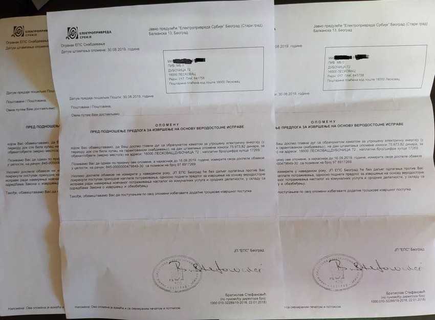 "Ne strahujem samo zbog ovog slučaja već i zbog činjenice da mi već duže vreme stižu računi za utrošenu električnu energiju, tuđi računi, imena ljudi koje ja ne poznajem. Na njima stoji ručno dopisan broj mog strujomera. I taj slučaj sam prijavila, ali rešenje ne nazire. Neko se, očigledno navadio na moju i kuću mog sestrića i sestričine", žali se ova Leskovčanka.