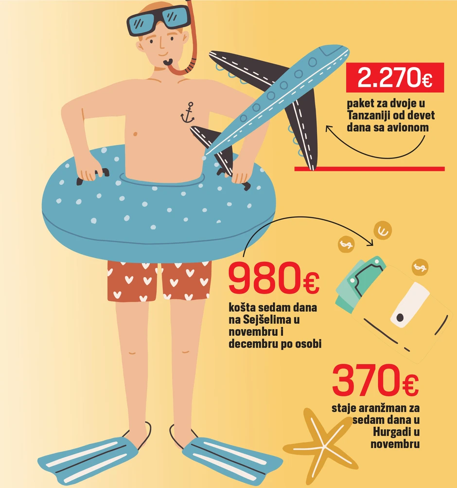 Na Kipru je last minit noćenje od 40 do 60 evra, a sedmodnevno letovanje na Sejšelima u novembru i decembru je oko 980 evra po osobi. U cenu su uračunate i avio-takse, transfer i doručak.