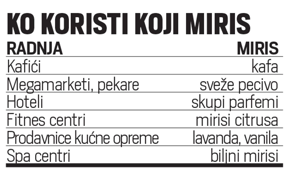 - Cilj ovakvog vida marketinga je da privuče kupce, ali i da ih podstakne na kupovinu. Sasvim je logično da će neko, ako oseti ugodan miris u radnji, možda poželeti da se zadrži duže, a dok tako razgleda robu, često kupi više od planiranog - objašnjava Marko Popović, stručnjak za marketing.