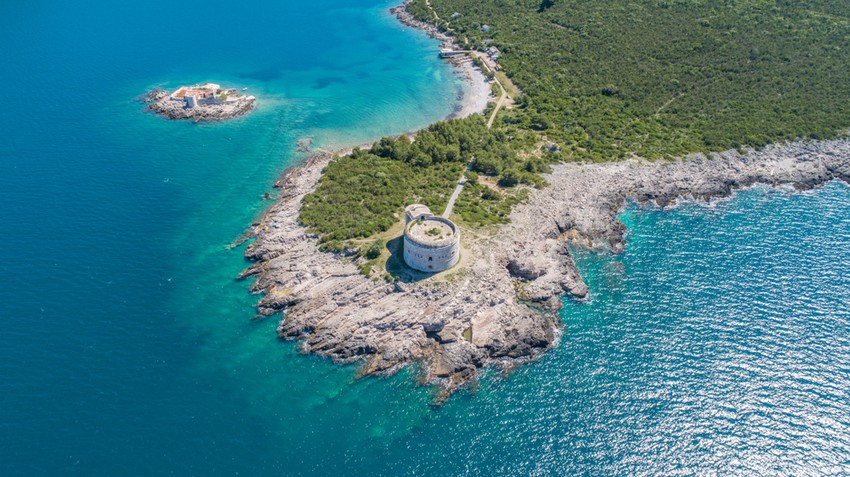 Kako je objavljeno u prodajnom paketu je lična plaža 5.690 metara kvadratnih (zemljište) i austrougarska tvrđava Arza od 1.455 kvadratnih metara (građevina).