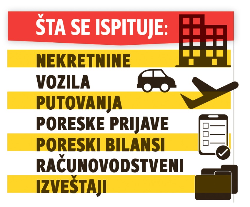 - Osnova zakona je unakrsna provera imovine. Postupak se sprovodi pažljivo, vrlo je složen i može da traje i duže od jedne godine. Odvija se mimo očiju javnosti, a podrazumeva kontrolu celokupne imovine, pokretne i nepokretne sa jedne strane i desetina dokumenata i izveštaja iz svih mogućih kanala sa druge strane. Poreska uprava će praktično proveravati imovinu, njenu vrednost i poreklo tako što će detaljno gledati sve poreske prijave i poreske bilanse, zatim računovodstvene izveštaje i druge evidencije i baze. Sve to potom će upoređivati sa podacima iz poreskog računovodstva i drugih službenih evidencija. Ako je neko, recimo, u januaru 2018. imao imovinu vrednu 20.000 evra, a tokom 2018. svakog meseca prihodovao 60.000 dinara, da bi na kraju 2018. njegova imovina bila 500.000 evra, ta osoba mora da objasni Poreskoj upravi odakle tolika neravnoteža imovine i prihoda - kaže izvor "Blica".