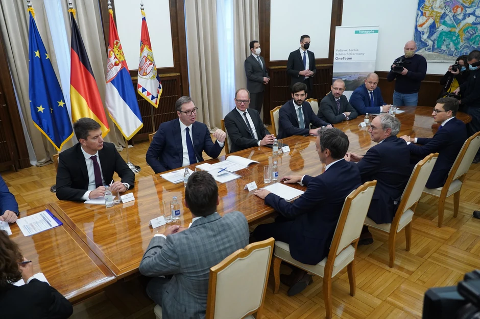 Predsednik Srbije Aleksandar Vučić sastao se sa delegacijom kompanije Hansgrohe.