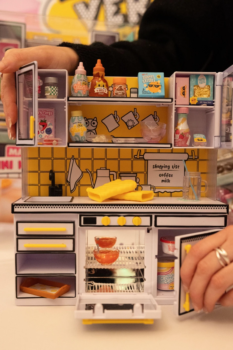 Pakovanje od smole u svakom setu može da imitira prehrambene artikle kao što su tegla putera od kikirikija, javorov sirup, posuda za mleko itd., a smole kada se stvrdnu imitiraju hranu.