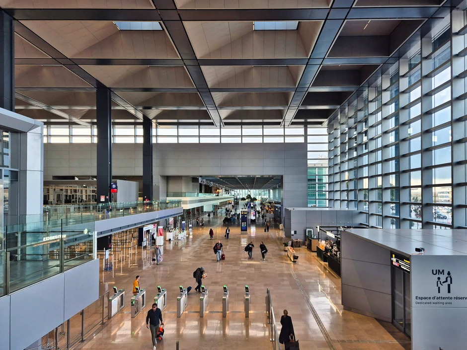 Putnici koji stižu u Marsej, Francuska (jedno od najboljih mesta za posetu časopisu Condé Nast Traveller u 2025. godini), otkriće da glamur Provanse sada počinje na aerodromu. Nova zgrada povezuje dve postojeće strukture Terminala 1 aerodroma, koje su izgrađene 1960-ih i 1990-ih. Veza, koja se naziva coeur, ili srce na engleskom, je hol sa prozorima i visokim plafonima od 21 metra, sa mrežom poliranih aluminijumskih krovnih prozora za poboljšanje prirodne ventilacije. Sama zgrada je napravljena od 70% recikliranog čelika i dodaje 28.000 kvadratnih metara prostora aerodromu.