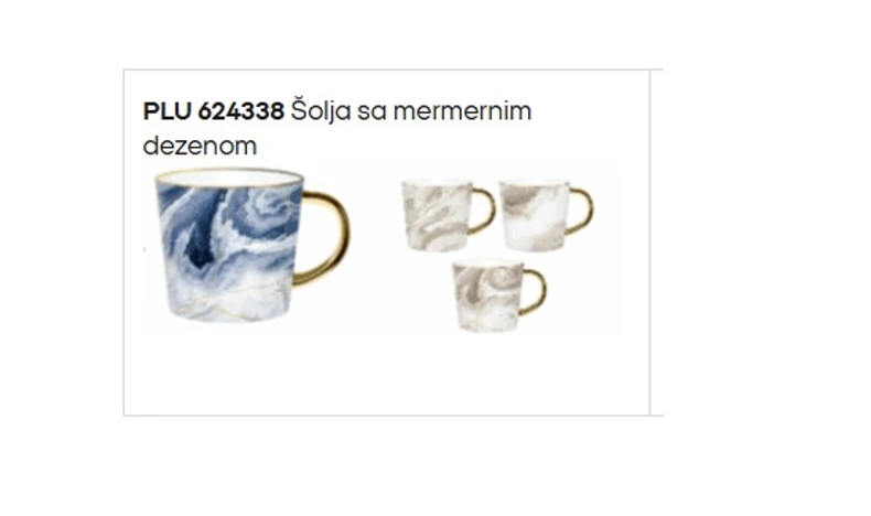 - PLU 624338 bela šolja sa mermernim dezenom;