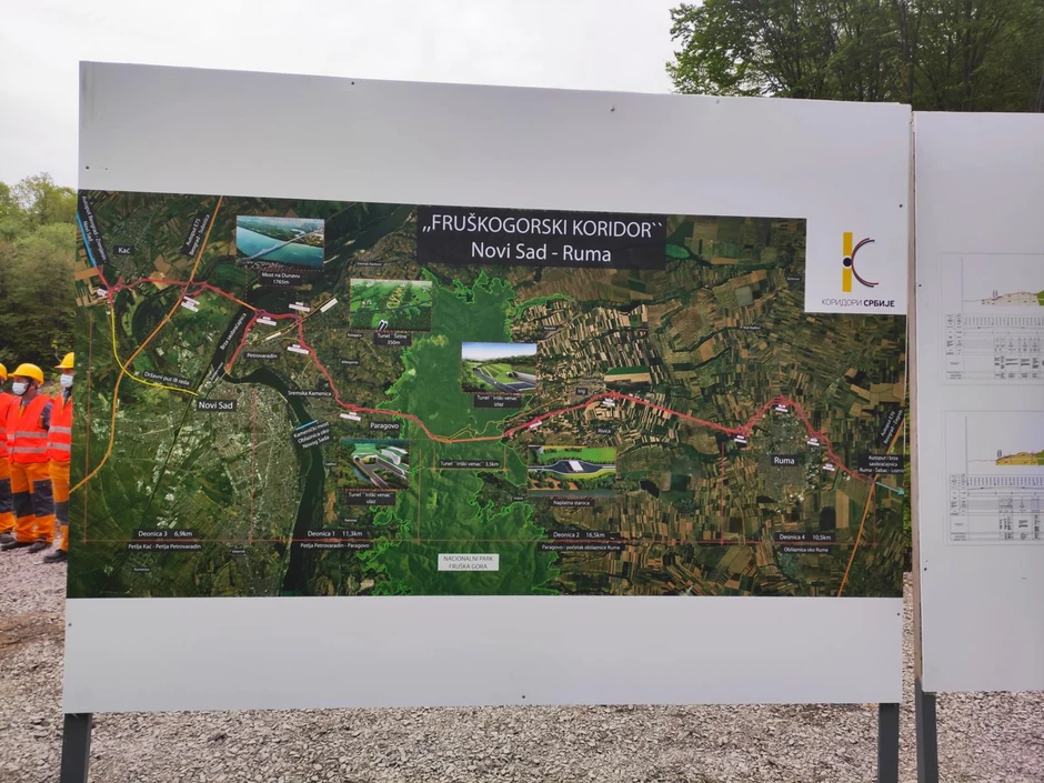 Dodao je da će Fruškogorski koridor predstavljati autoput od 47,7 km, sa četiri trake od po 3,5 metra, ali bez zaustavnih traka i da će ta saobraćajnica spajati autoputeve ka Šidu i Subotici, a imaće i najduži tunel u Srbiji, kroz Frušku goru od 3,5 kilometra. Na trasi će biti izgrađen i novi most preko Dunava od 1,8 km, koji će spajati Petrovaradin u Sremu i Kovilj u Bačkoj.
