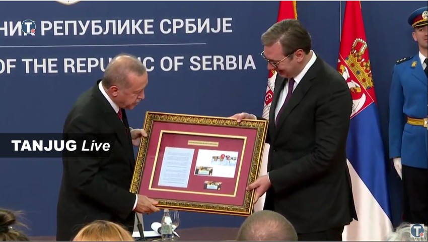 "Sutra ćemo postaviti kamen temeljac na izgradnji autoputa Beograd Sarajevo na deonici Sremska Rača - Kuzmin, što će preneti značajnu poruku za ceo region", rekao je Erdogan zahvalivši se Vučiću s rečenicom da se nada da će svi projekti biti korisni i za Srbiju i za Tursku.
