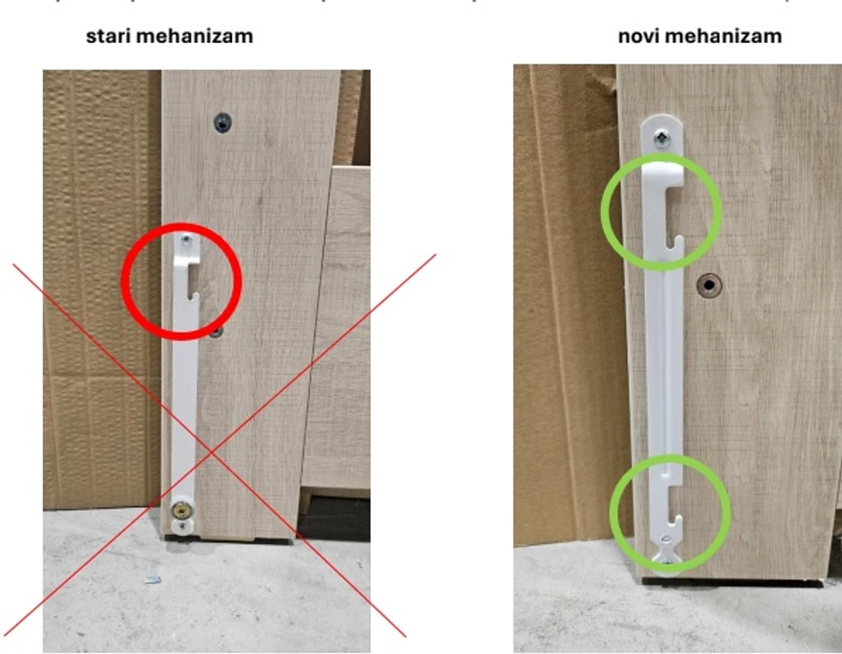 "Detalje o izmenama možete videte na slikama ispod, molimo vas da proverite koji mehanizam ima vaš krevetac: mehanizmi se razlikuju prema broju zubaca za zaključavanje, stari mehanizam je imamo samo jedan zubac, dok novi ima dva zupca", piše u obrazloženju kompanije.