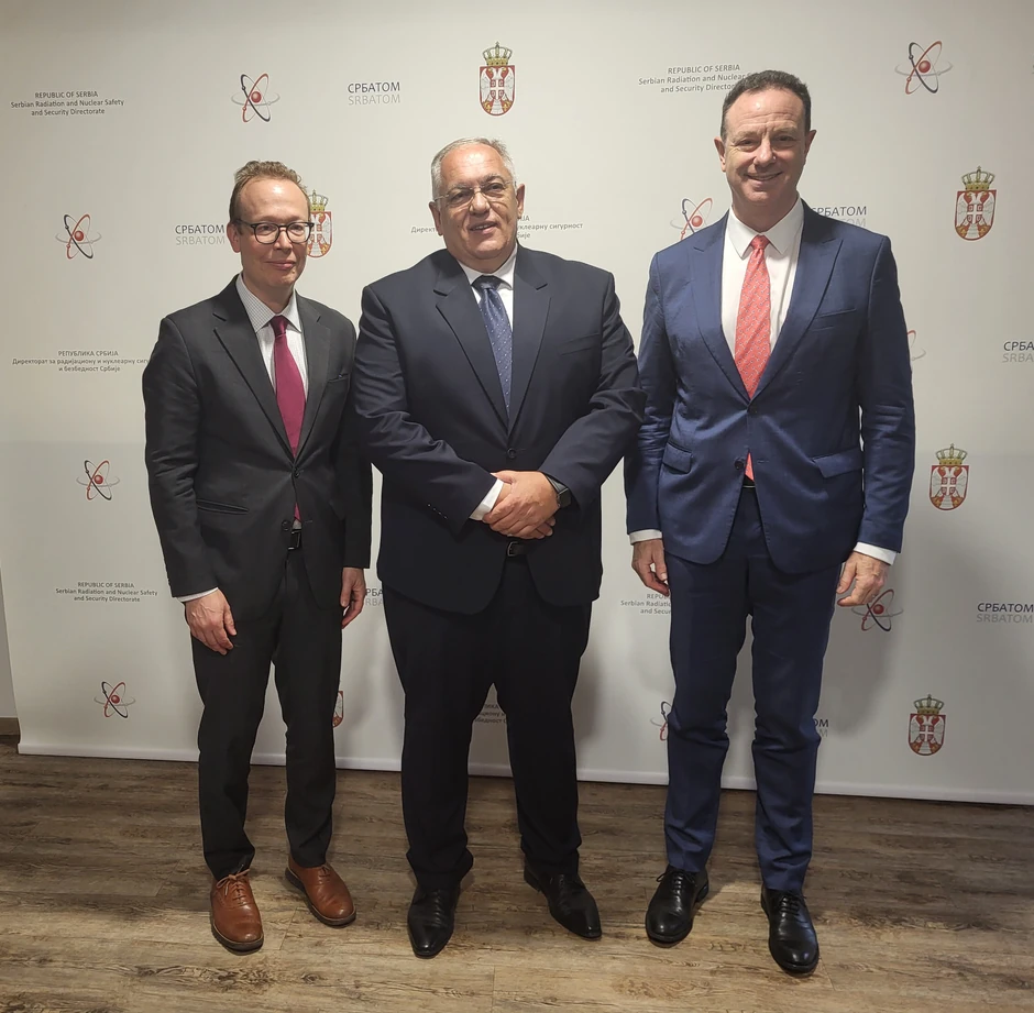 Džastin Fridman, politički savetnik za nuklearnu diplomatiju iz Stejt departmenta i njegovog naslednik na toj poziciji Kristofer Klajn posetili su danas Direktorat za radijacionu i nuklearnu sigurnost i bezbednost Srbije i tom prilikom održali sastanak s direktorom Slađanom Velinovom i njegovim saradnicima.