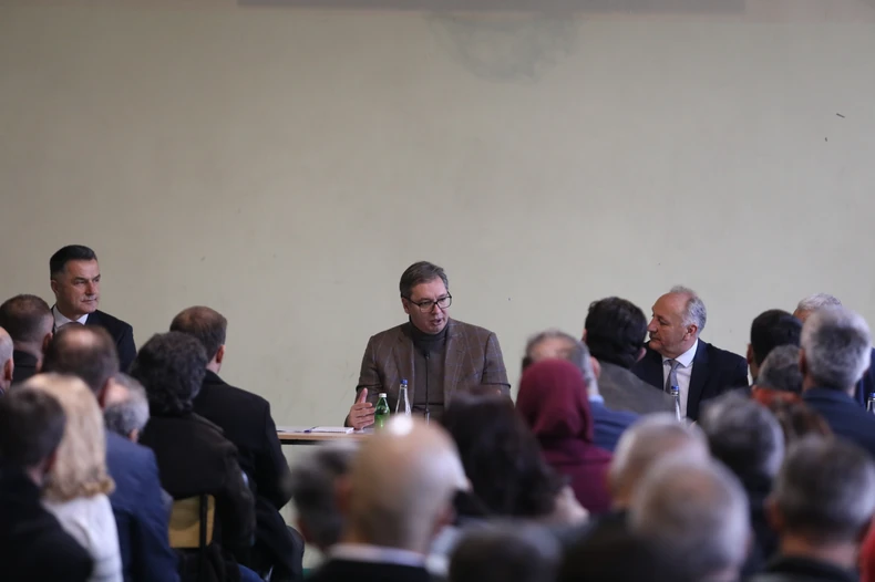 Predsednik Aleksandar Vučić danas je u novovaroškom selu Seništa razgovarao sa meštanima o problemima koji ih muče u tom kraju.