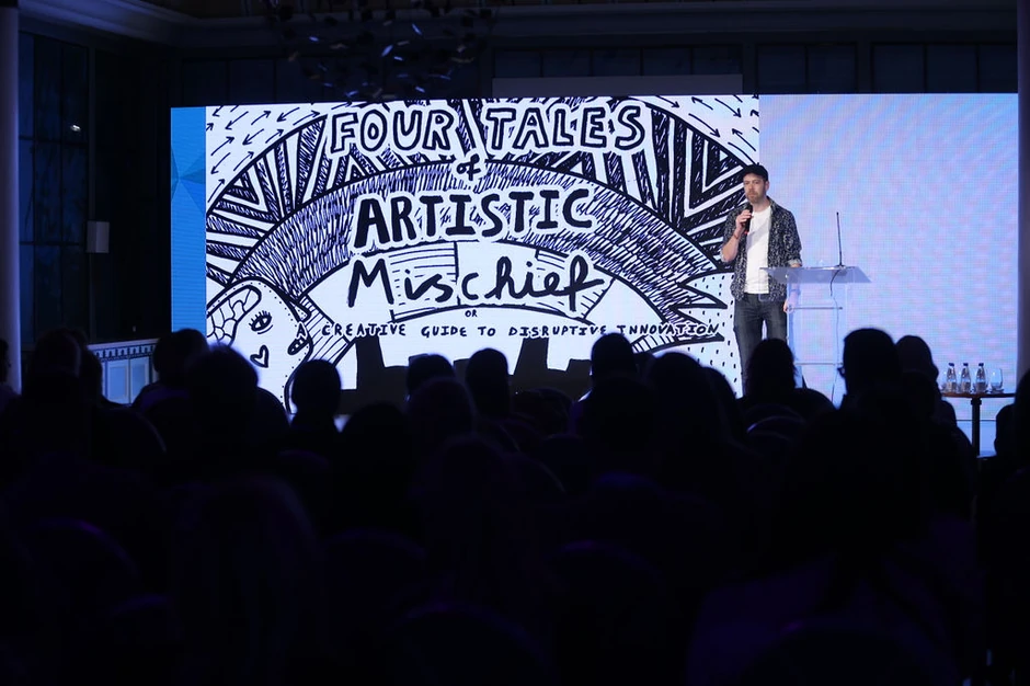 „Četiri priče o umetničkom nestašluku” bio je naziv poslednje sesije koju je vodio Stiv Čepman, mislilac, pisac, umetnik čiji su likovni radovi i konceptualni projekti predstavljeni na 7 kontinenata (uključujući Antartik). Stiv je napravio 100 epizoda podkasta bez reči, anti Ted Talk na kom govore ljudi koji nisu eksperti u toj oblasti, organizovao čitalačke klubove knjiga koje nikad nisu napisane...