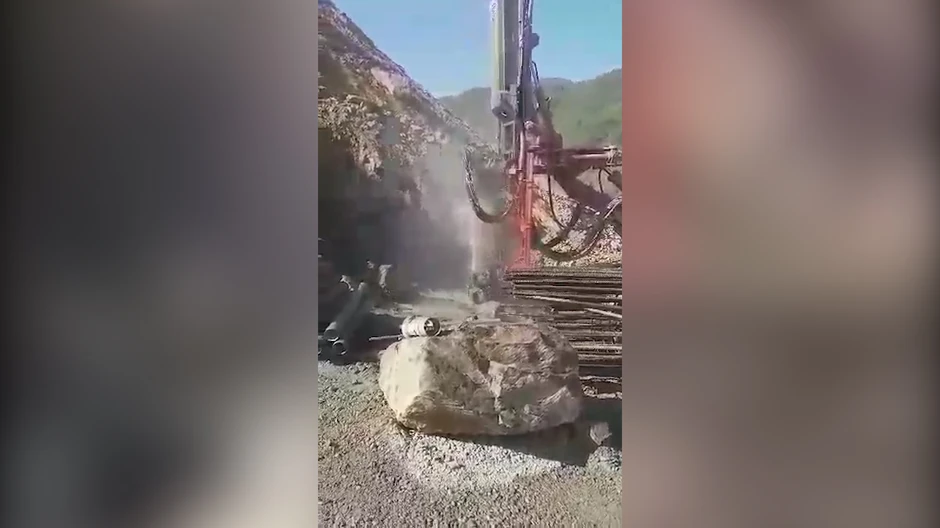 Dok su bušili zemlju kako bi ugradili šipove koji imaju zadatak da stabilizuju klizište, zbog kojeg se i srušio zid, krenula da šiklja voda, što se može videti i na snimku.