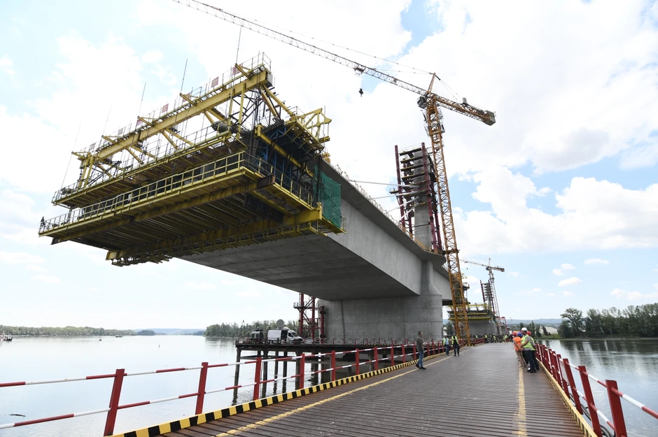 Na mostu preko Dunava u toku su radovi na izgradnji svih elemenata mostovske konstrukcije objekta glavnog mosta i prilaznih mostovskih konstrukcija.
