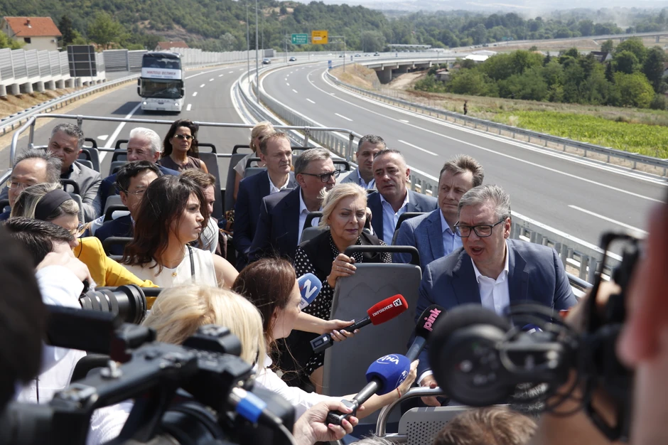 - Danas su sve bivše staze pune rupa i kontra nagiba, postale najmoderniji i najbezbedniji auto-putevi u našoj Srbiji. Neka lepa naša srpska mesta delovala su nam katkad zaista daleko i skoro pa nedogledno. Sada je Srbija jaka država, razvijene infrastrukture, koja će se u godinama koje dolaze još više modernizovati", istakao je Vučić u obraćanju.