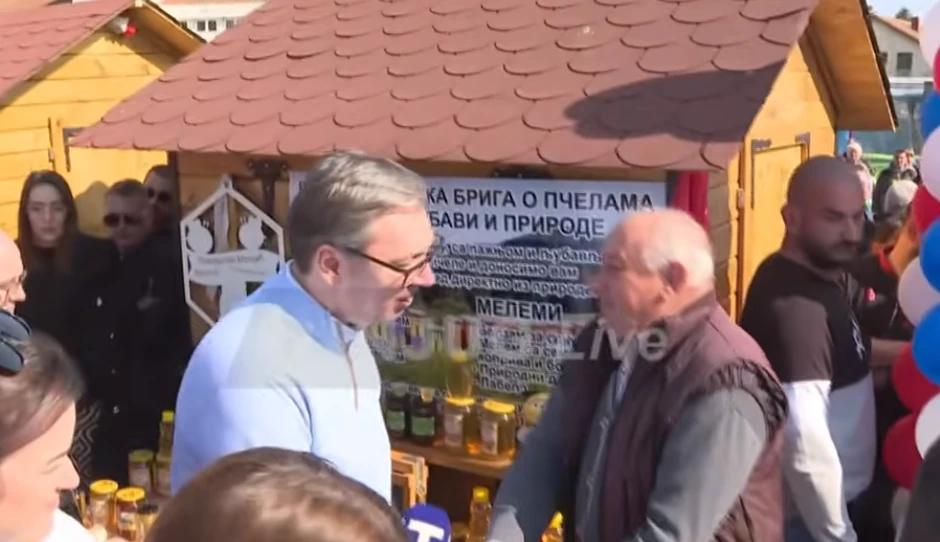 Vučić je nakon toga štandove sa domaćim proizvodima, gde je probao hranu i piće koje su pripremili meštani.