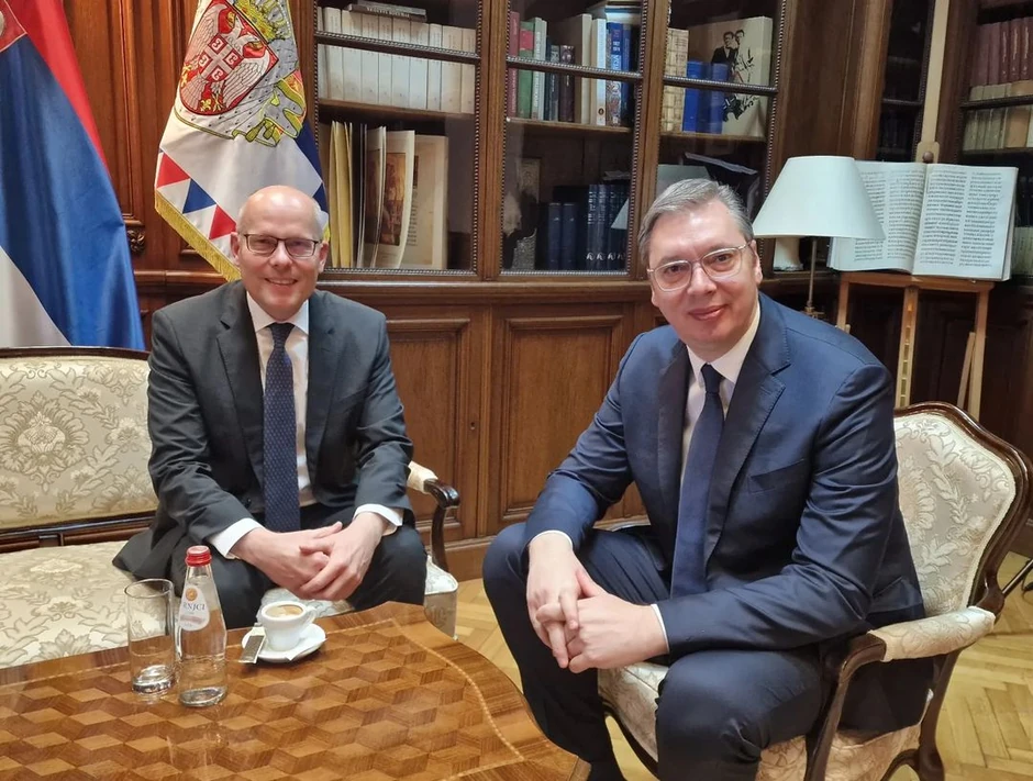 "Partnerski odnosi sa Nemačkom su od najveće važnosti za Srbiju. Ekonomska saradnja i evropski put Srbije u žiži razgovora sa Peterom Bajerom, članom Bundestaga iz redova CDU", poručio je Vučić.