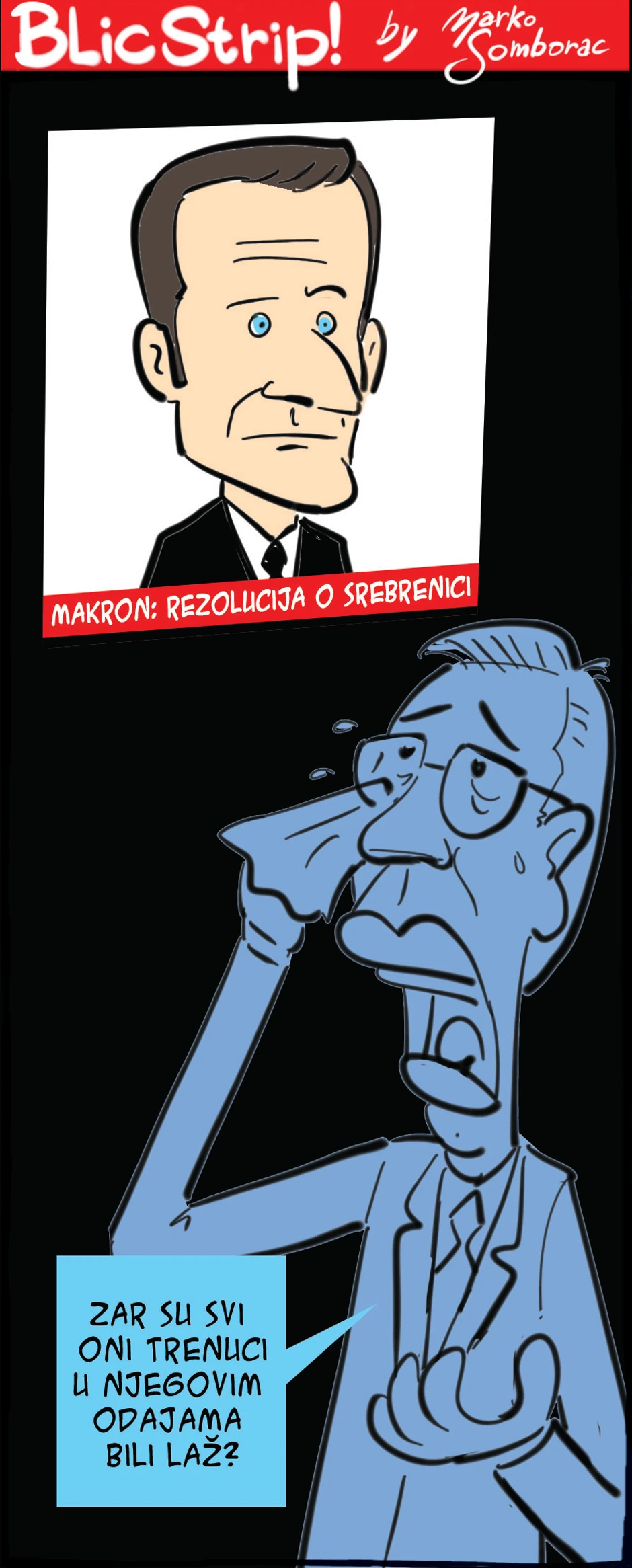Naslovna blicStrip Blic strip crta i piše Marko Somborac. BLIC STRIP Crta i piše: Marko Somborac 22. april 2024. 11:11 1 Foto: Marko Somborac / Ringier Blic strip Marko Somborac Slušaj vest 0:00/ 0:00 Blic strip crta i piše Marko Somborac. Blic strip (Foto: Marko Somborac / Ringier)