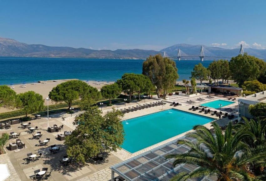 Savršenu kombinaciju zelenog okruženja sa pogledom na more obezbedio je hotel Porto Rio 4*, smešten na 8 km od Patrasa. Za uslugu all inclusive boravak na 7 noćenja košta od 819 evra, a slobodnih mesta ima od 10.7. Od sadržaja je na usluzi glavni restoran, a la carte restoran, glavni bar, snek bar, kafe, bar kraj bazena, otvoreni bazen, dečiji bazen, dečije igralište, teniski teren (uz doplatu). Suncobrani i ležaljke pored bazena i na plaži su besplatni za goste hotela.