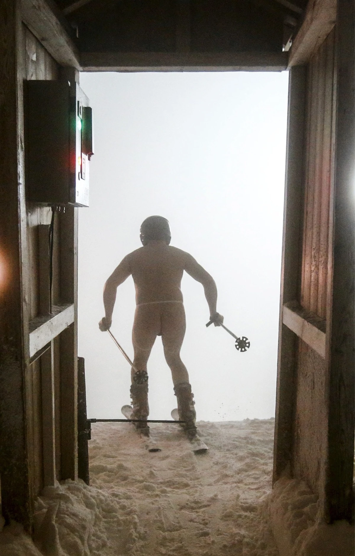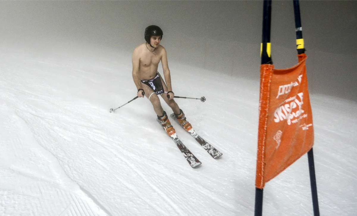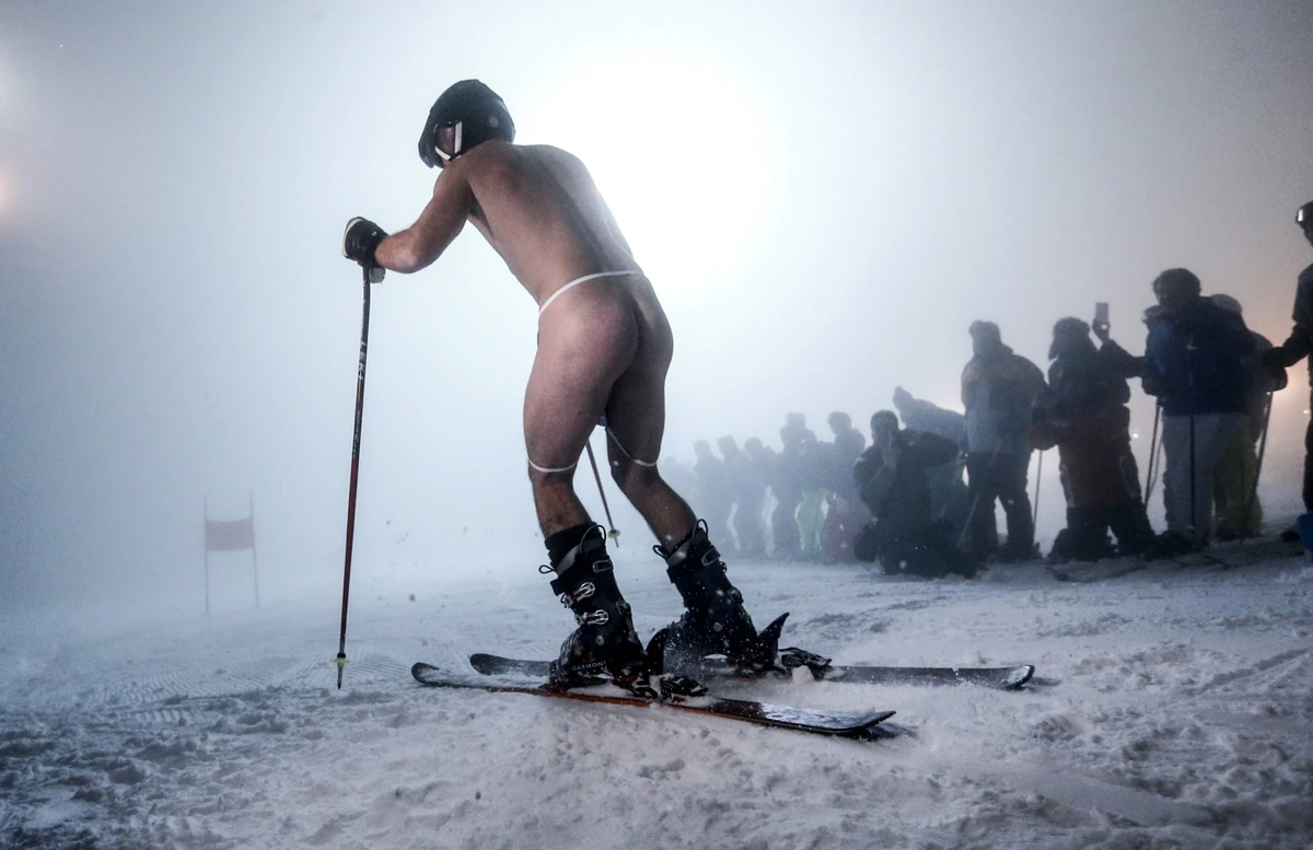 U skijaškom odmaralištu Štajnah ispod planinskog prevoja Brener u zapadnoj Austriji održana je neobična skijaška trka "Goli slalom" čiji su se učesnici takmičili bez odeće.