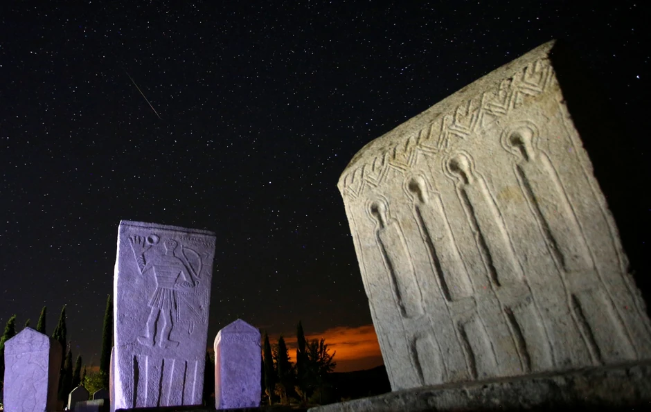 Meteori su "iscrtavali" tragove na noćnom nebu nad nadgrobnim spomenicima u Radimlji, tokom sinoćne pojave verovatno najpoznatijeg meteorskog roja Perseida.