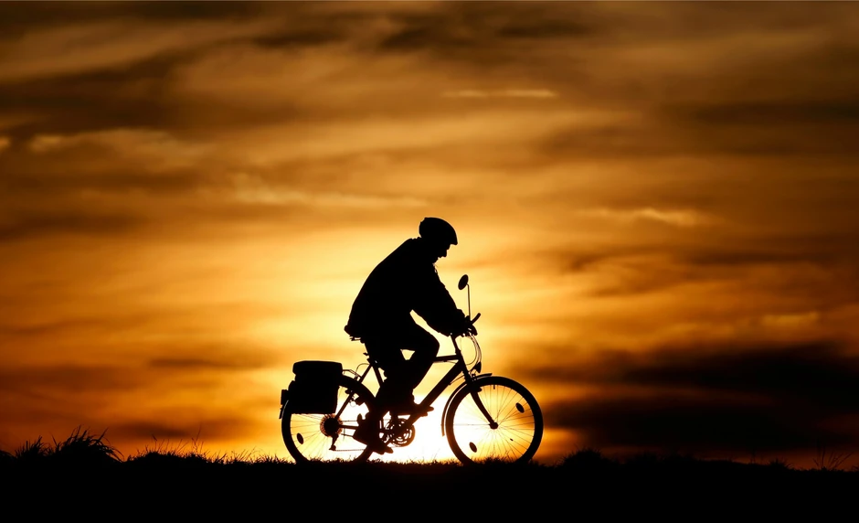 Siluete ljudi naspram zalaska sunca u Flaumdorfu u Nemačkoj.